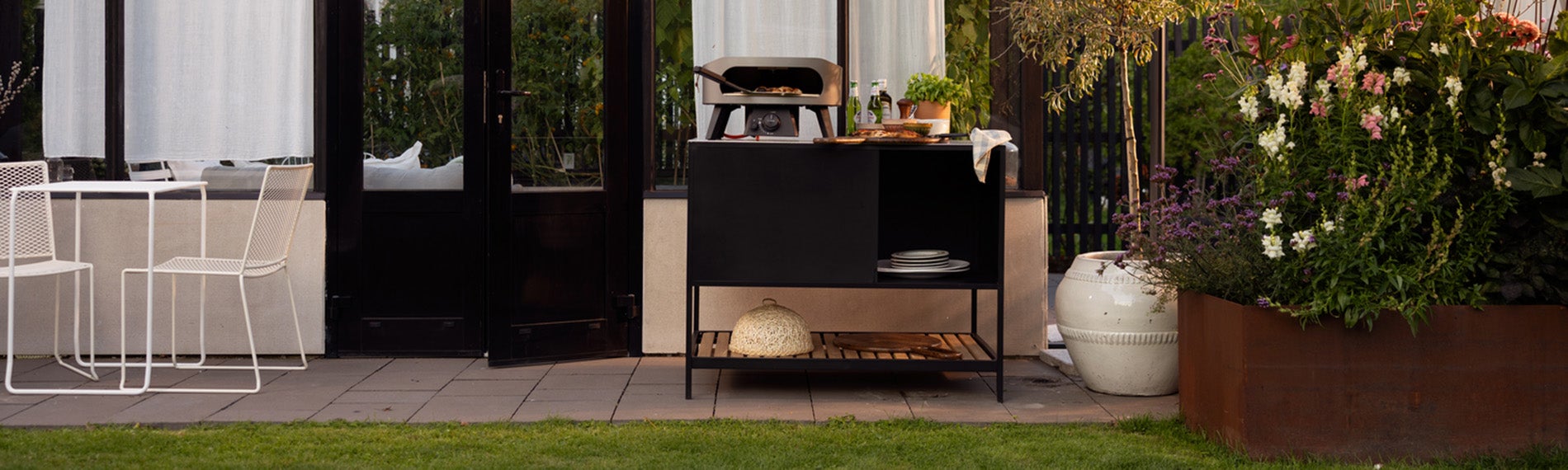 Skapt for pizza. Klargjort for mer. Prep er det perfekte utekjøkkenet for pizzaovner og utendørs matlaging. Den romslige arbeidsflaten er i børstet aluminium, som er ripebestandig og enkel å rengjøre. Smarte detaljer som plass til gassflaske og en praktisk hylle under gjør Prep både funksjonell og stilren.