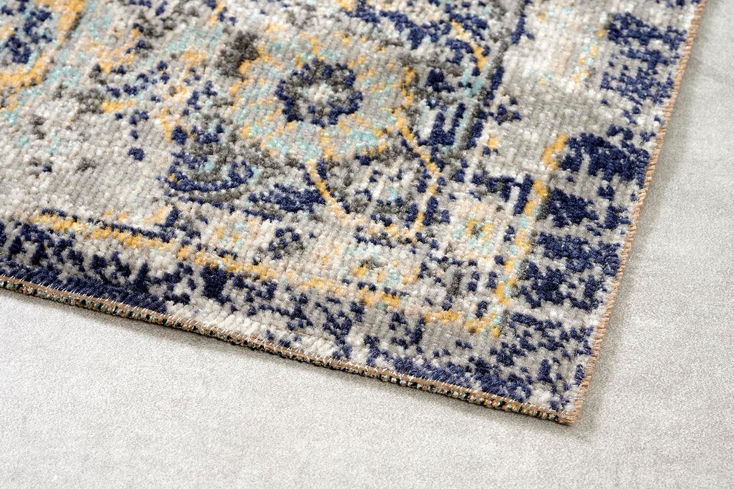 Teppe med lappeteppe i blå nyanser. Teppet har kort lugg med en myk chenillefølelse og vintage stil. Til tross for sitt tekstilutseende er Amarante slitesterk. Mønsteret er et nikk til tradisjonell orientalsk design i moderne dempede farger. Gi vinterhagen din det lille ekstra med Amarante. 100% polypropylen chenille.