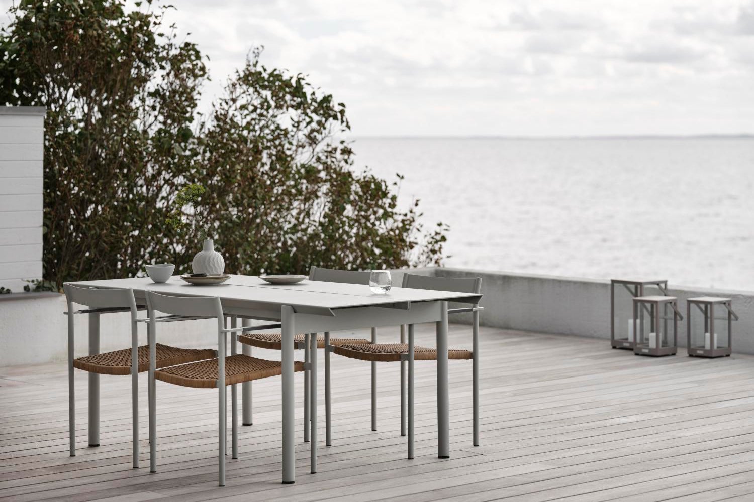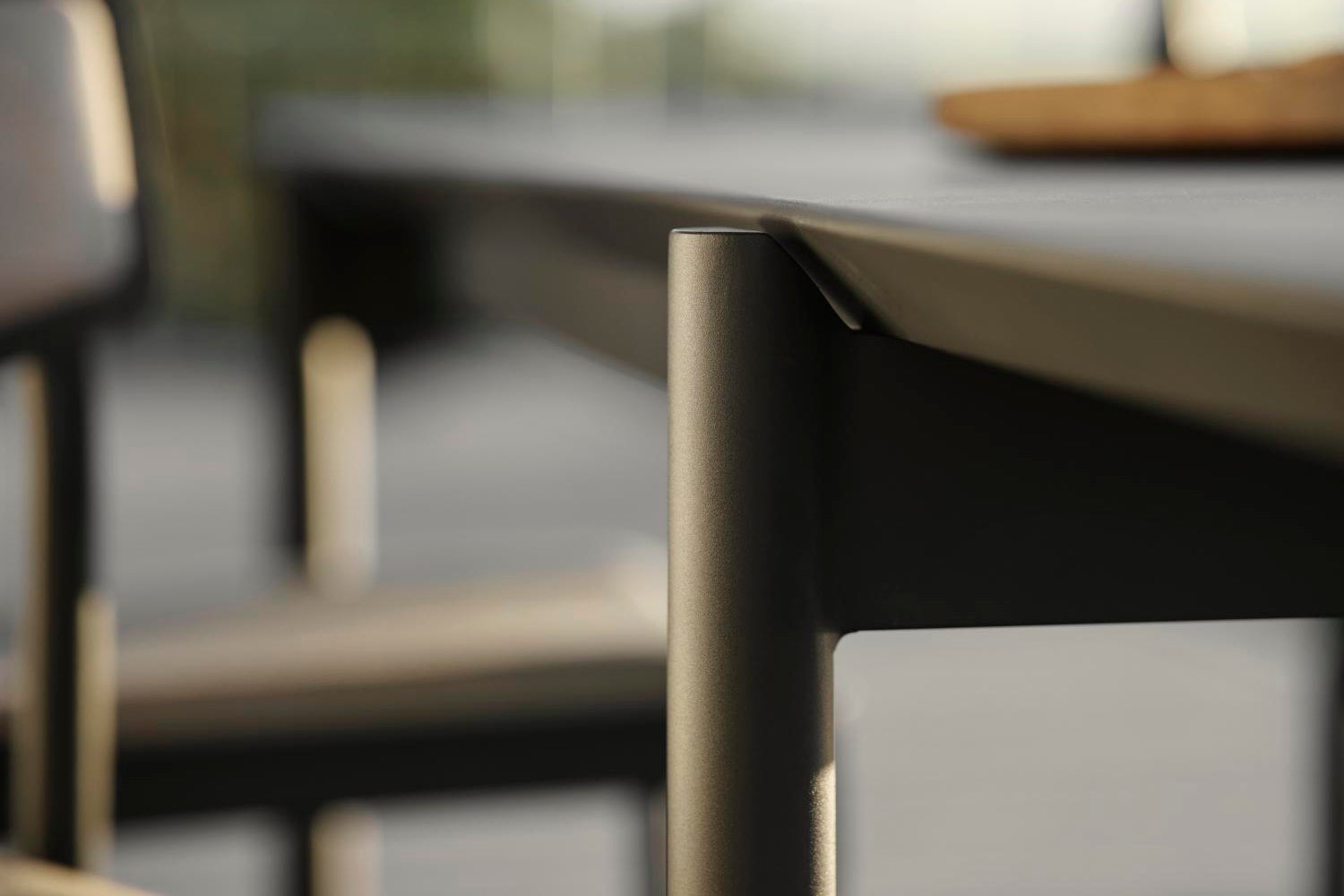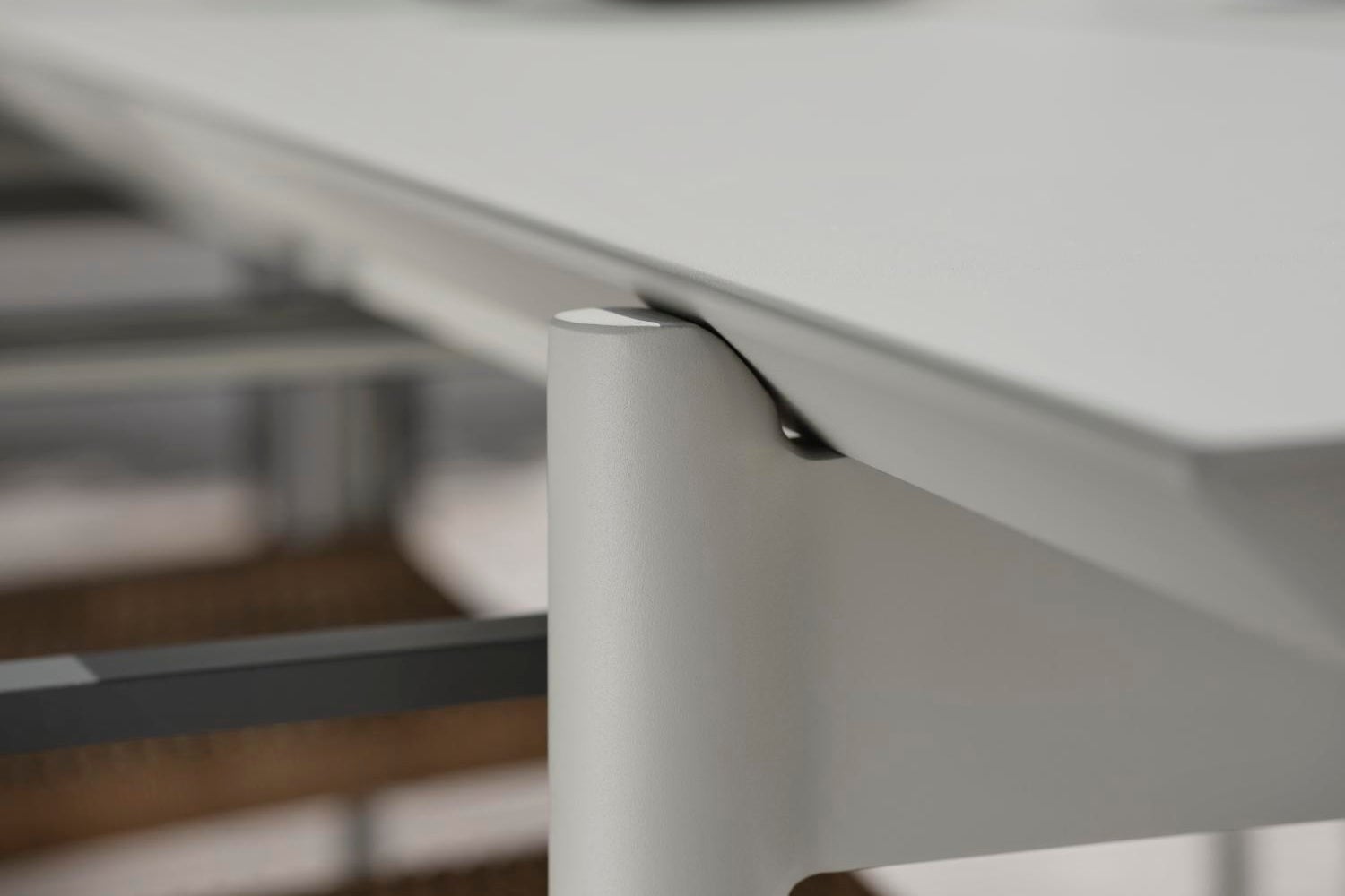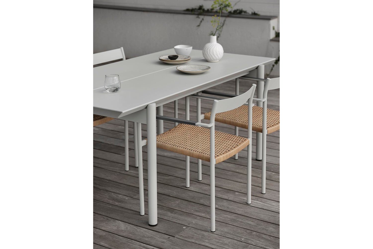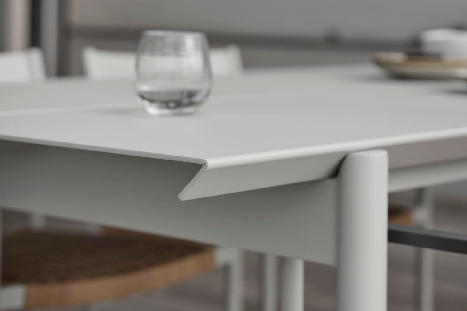 B45-bordet er laget utelukkende av aluminium og gir det et moderne preg, stramt, men likevel innbydende og med plass til mange. Takket være lydabsorberende maling på undersiden av bordet dempes klirringen av glass og porselen. B45 er tilgjengelig i to lengder (henholdsvis 180 og 250 centimeter), der en designdetalj er at avstanden mellom bordbena er den samme. Kantene på bordplaten har en elegant 45-graders vinkel, en detalj som øyet liker å fikse. Tilgjengelig i to farger.