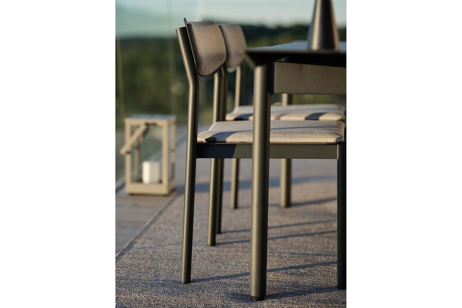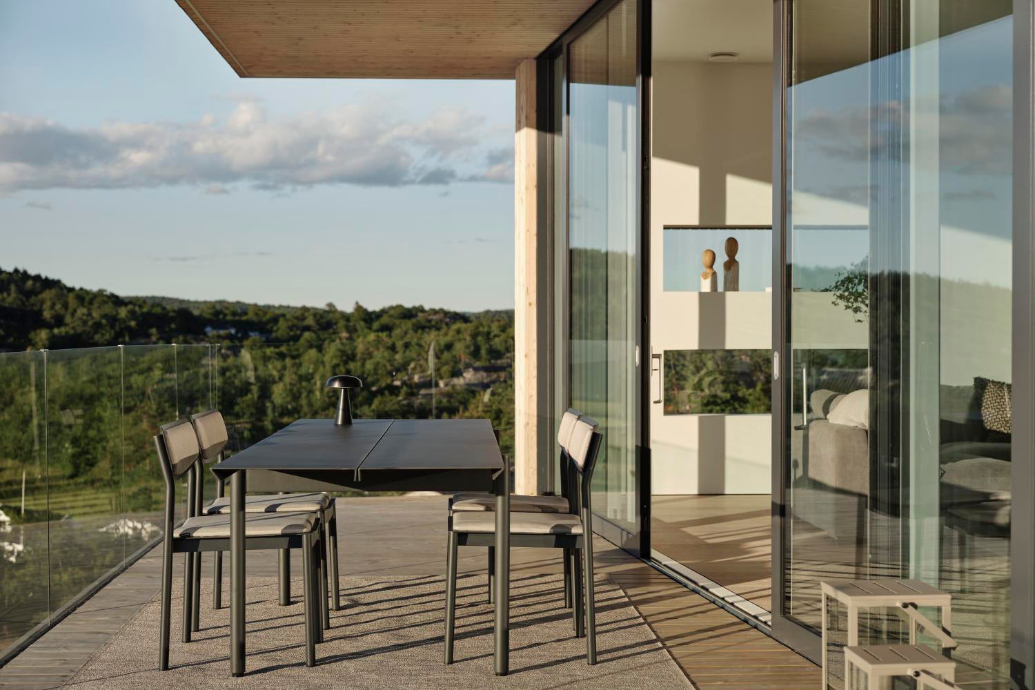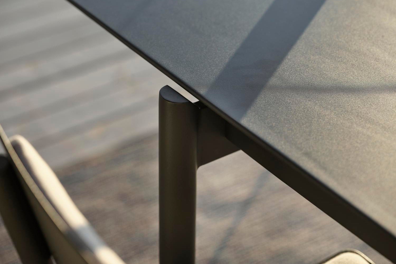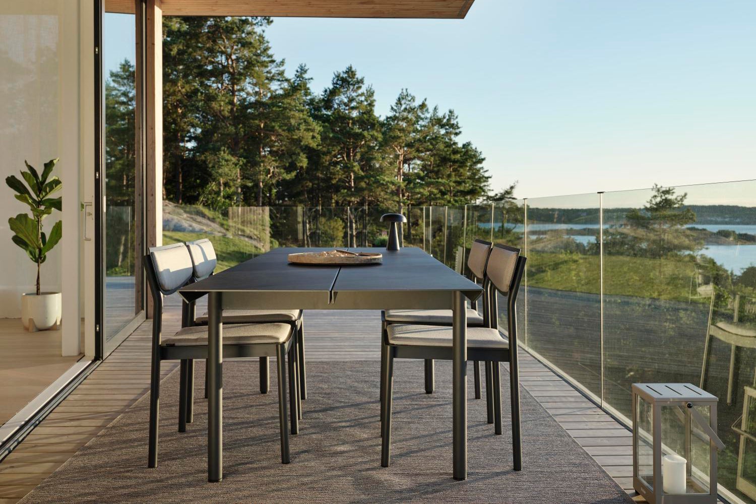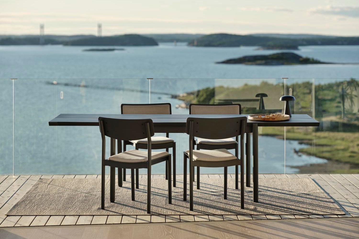 B45-bordet er laget utelukkende av aluminium og gir det et moderne preg, stramt, men likevel innbydende og med plass til mange. Takket være lydabsorberende maling på undersiden av bordet dempes klirringen av glass og porselen. B45 er tilgjengelig i to lengder (henholdsvis 180 og 250 centimeter), der en designdetalj er at avstanden mellom bordbena er den samme. Kantene på bordplaten har en elegant 45-graders vinkel, en detalj som øyet liker å fikse. Tilgjengelig i to farger.
