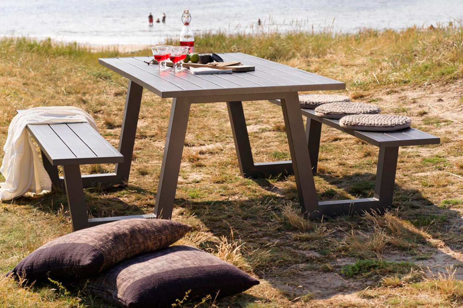 Moderne pikniksett i aluminium.