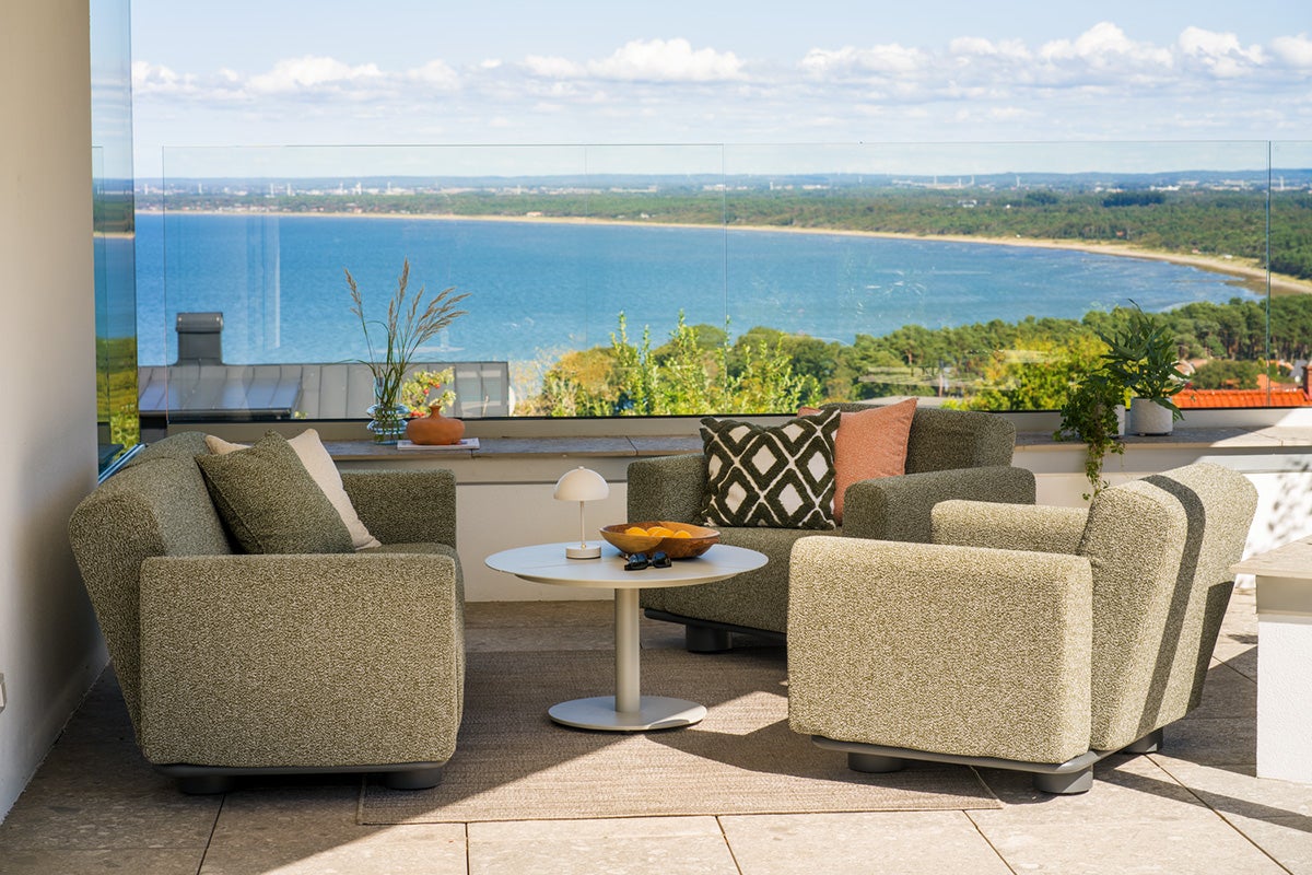 Bolster kombinerer innbydende komfort med uttrykksfull design. De helpolstrede formene, sjenerøse putene og de solide bena gir serien sin unike karakter, mens den robuste aluminiumsrammen i antrasitt sikrer langvarig holdbarhet. Det vannavstøtende TPU-stoffet gjør sofaen værbestandig. Putene er tilgjengelige i vår Teddy-stoff, i farger som forsterker følelsen av en eksklusiv utelounge. Putene er enkle å ta av og oppbevare. Bolster visker ut grensen mellom inne og ute – følelsen av en innendørssofa skapt for livet utendørs.