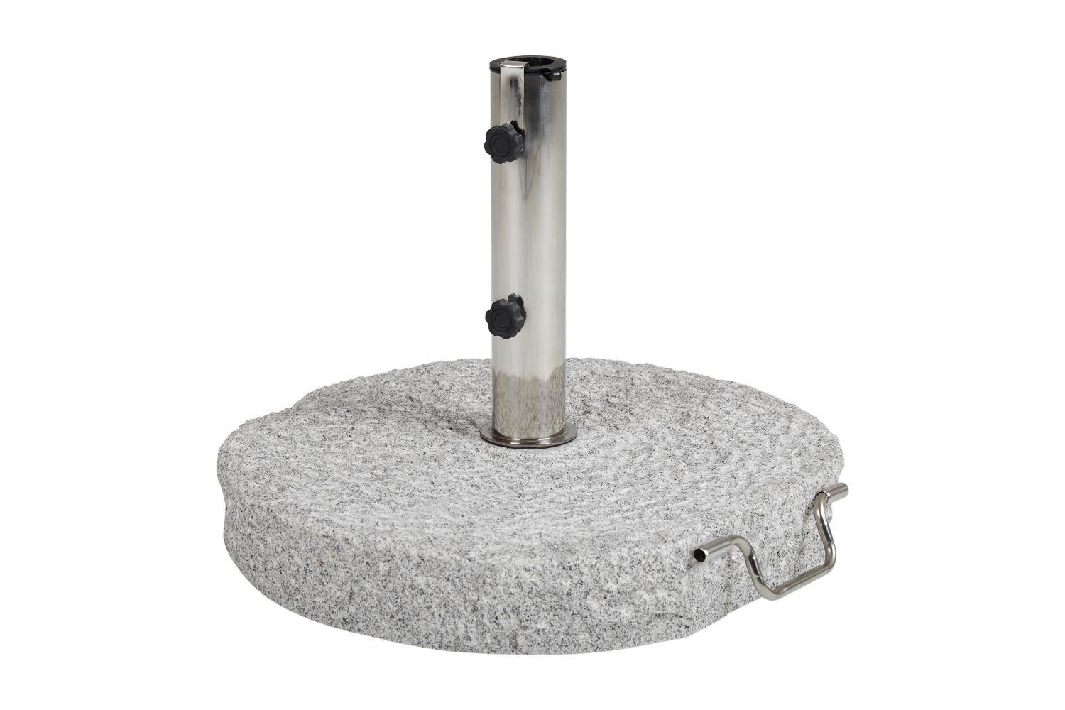 Granittbase med to forskjellige farger/utførelser og med rør i rustfritt stål. Begge størrelsene har håndtak, vekten på 70 kilo er også utstyrt med to hjul for enkel bevegelse. For stenger 35-54 mm.