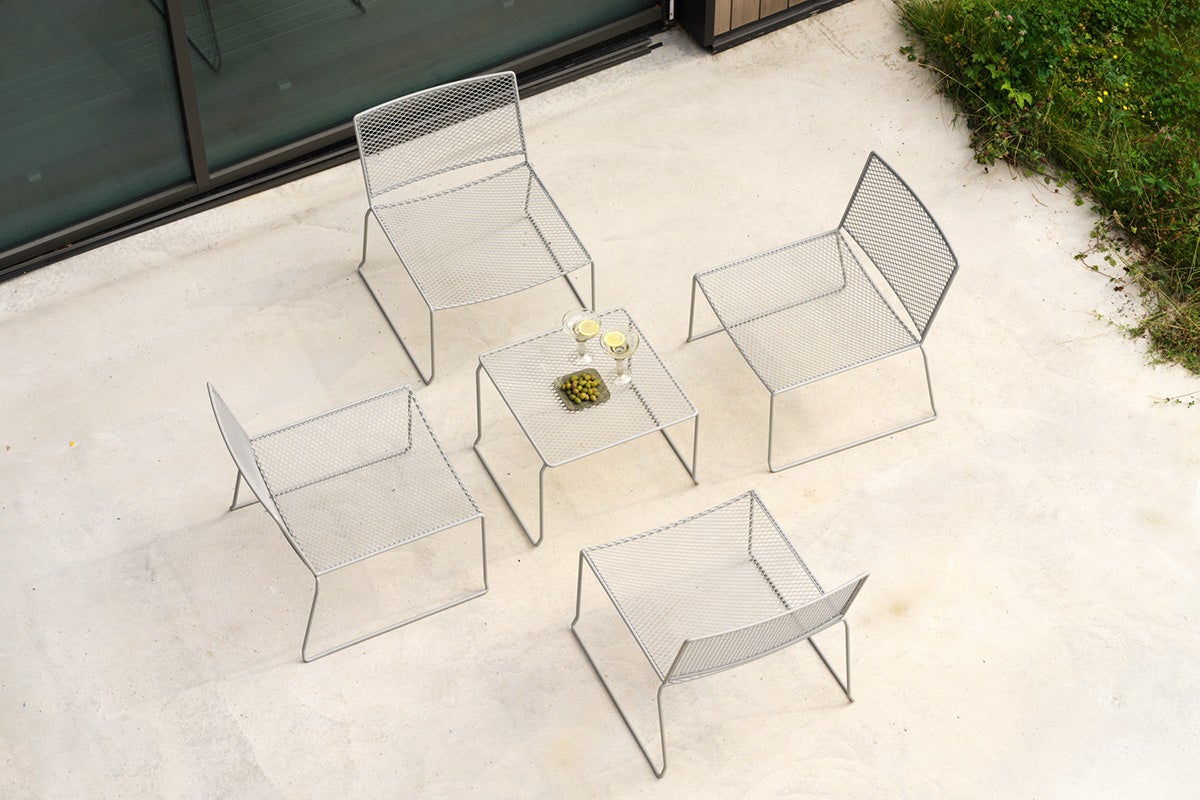 Designet med skandinavisk enkelhet og svensk håndverk, laget i Sverige av massivt stål. Navnet Haru betyr vår på japansk – et symbol på lys, energi og en ny begynnelse. Det doble pulverlakket og det grafiske strekkmetallmønsteret gjør møblene like holdbare som de er stilige.
