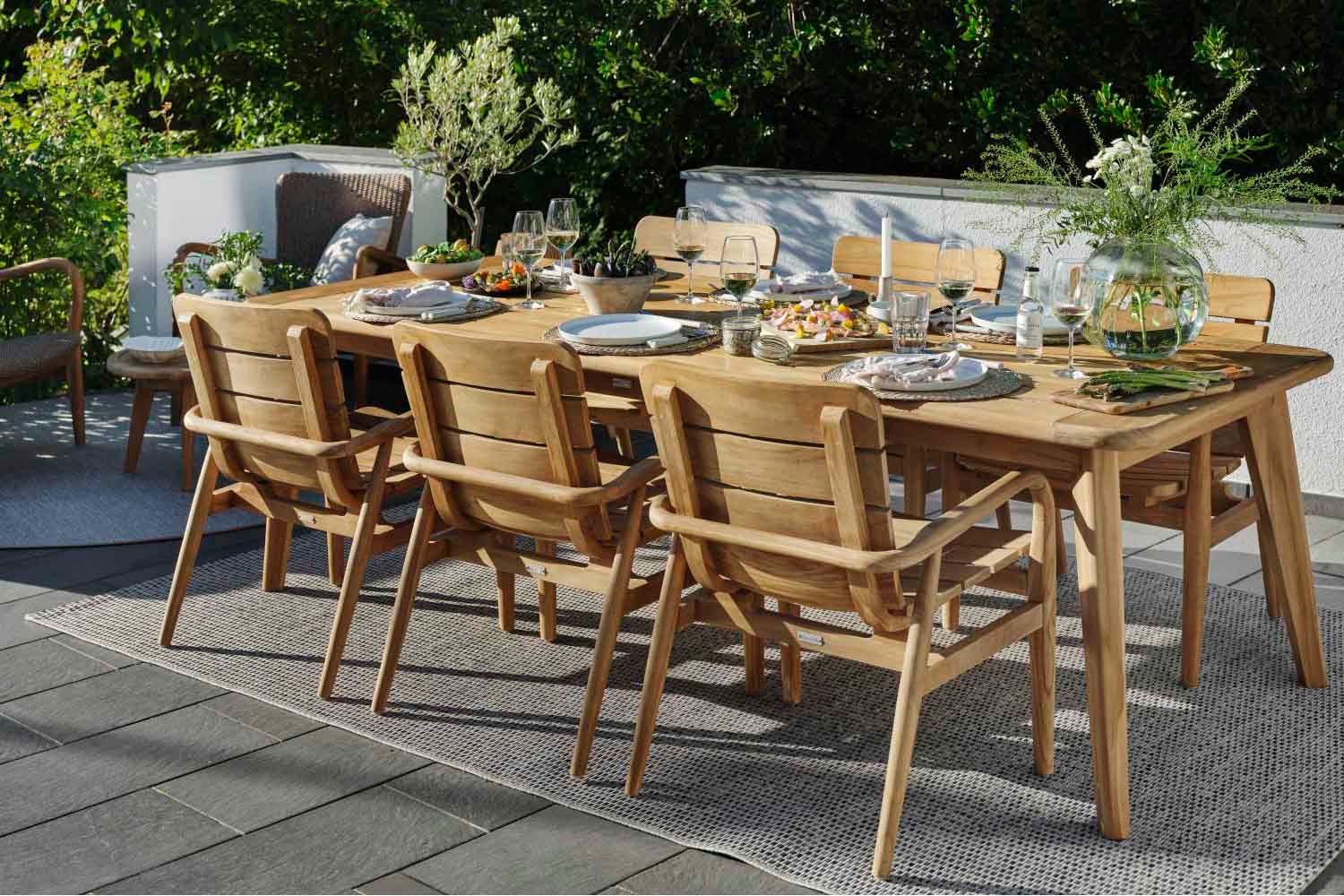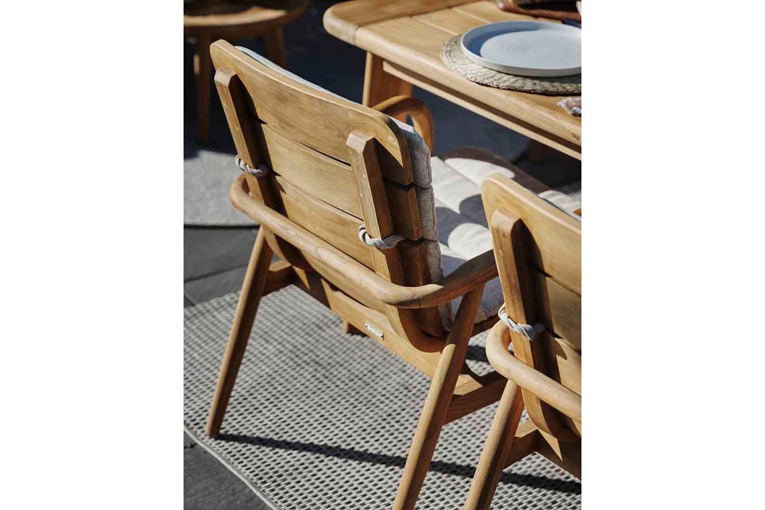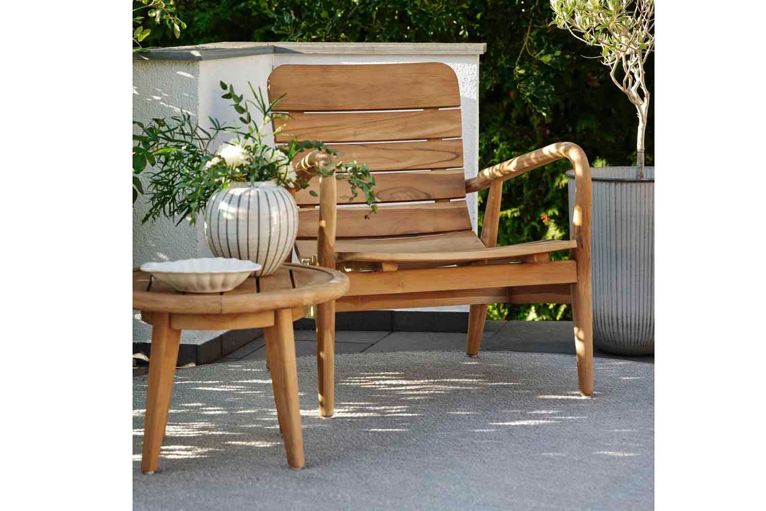 Lilja er en gruppe laget for å passe til både avslapning og måltider. Runde organiske former i teak. Solide plagg som samtidig har en eleganse i sine avrundede detaljer.