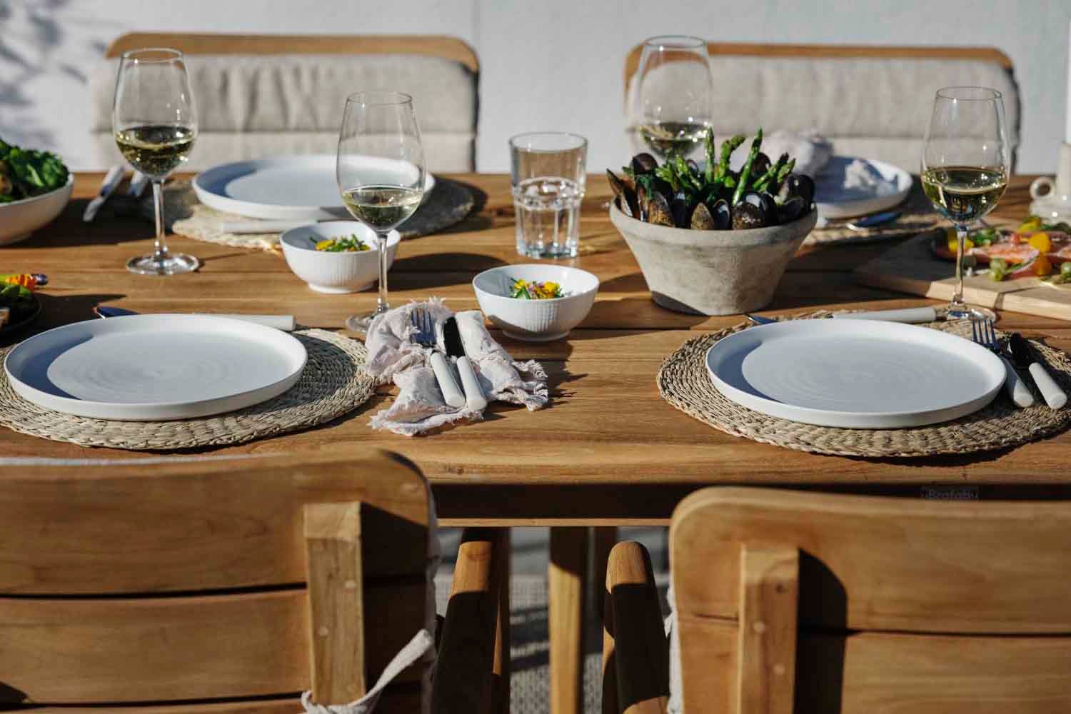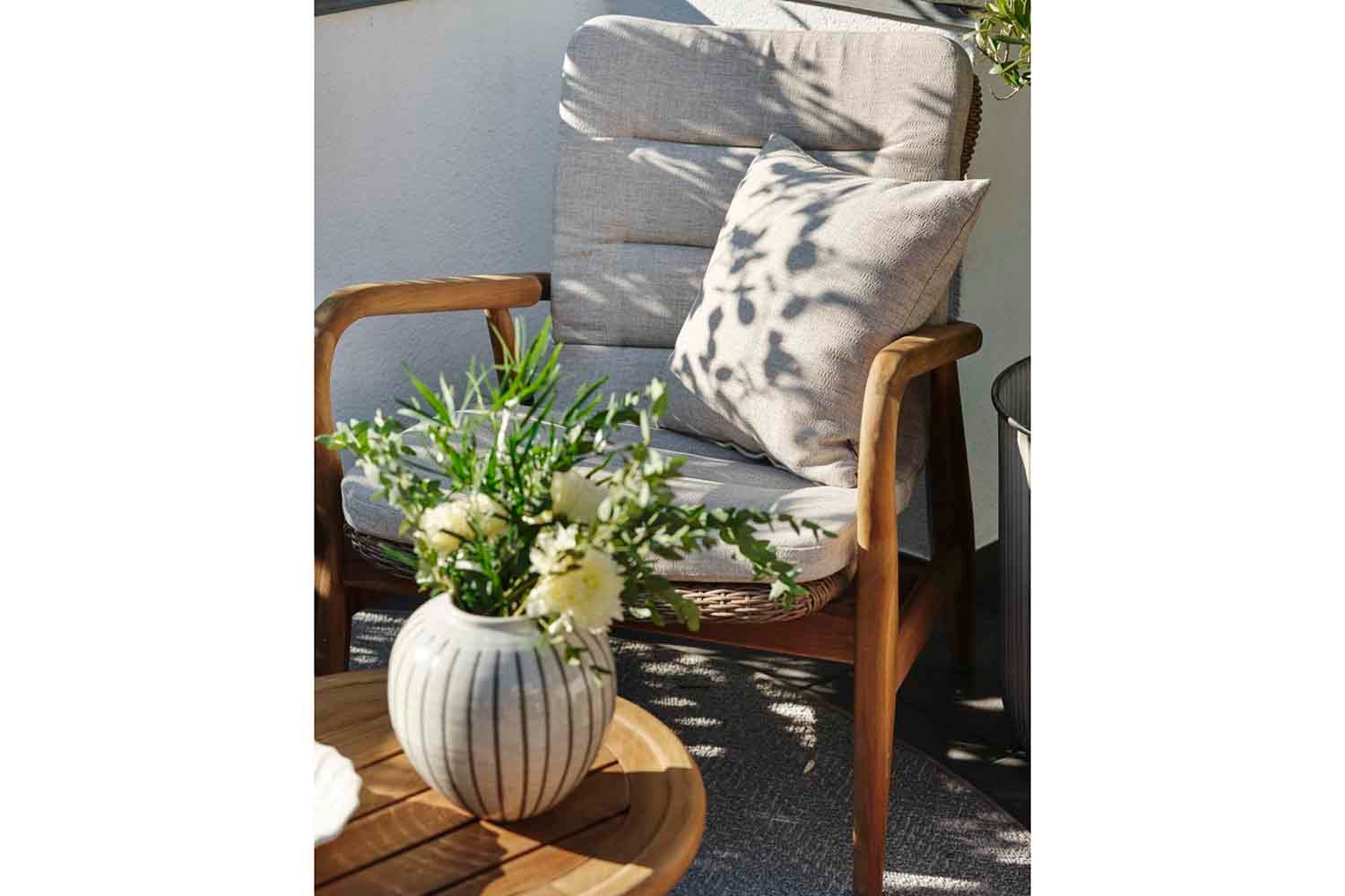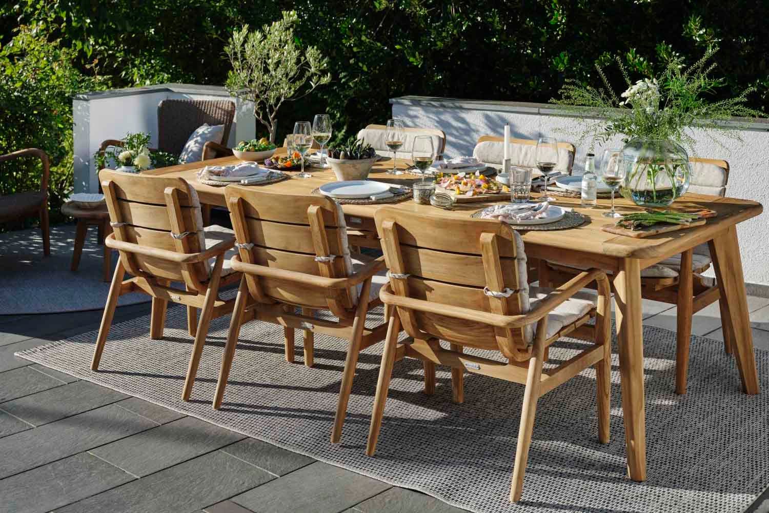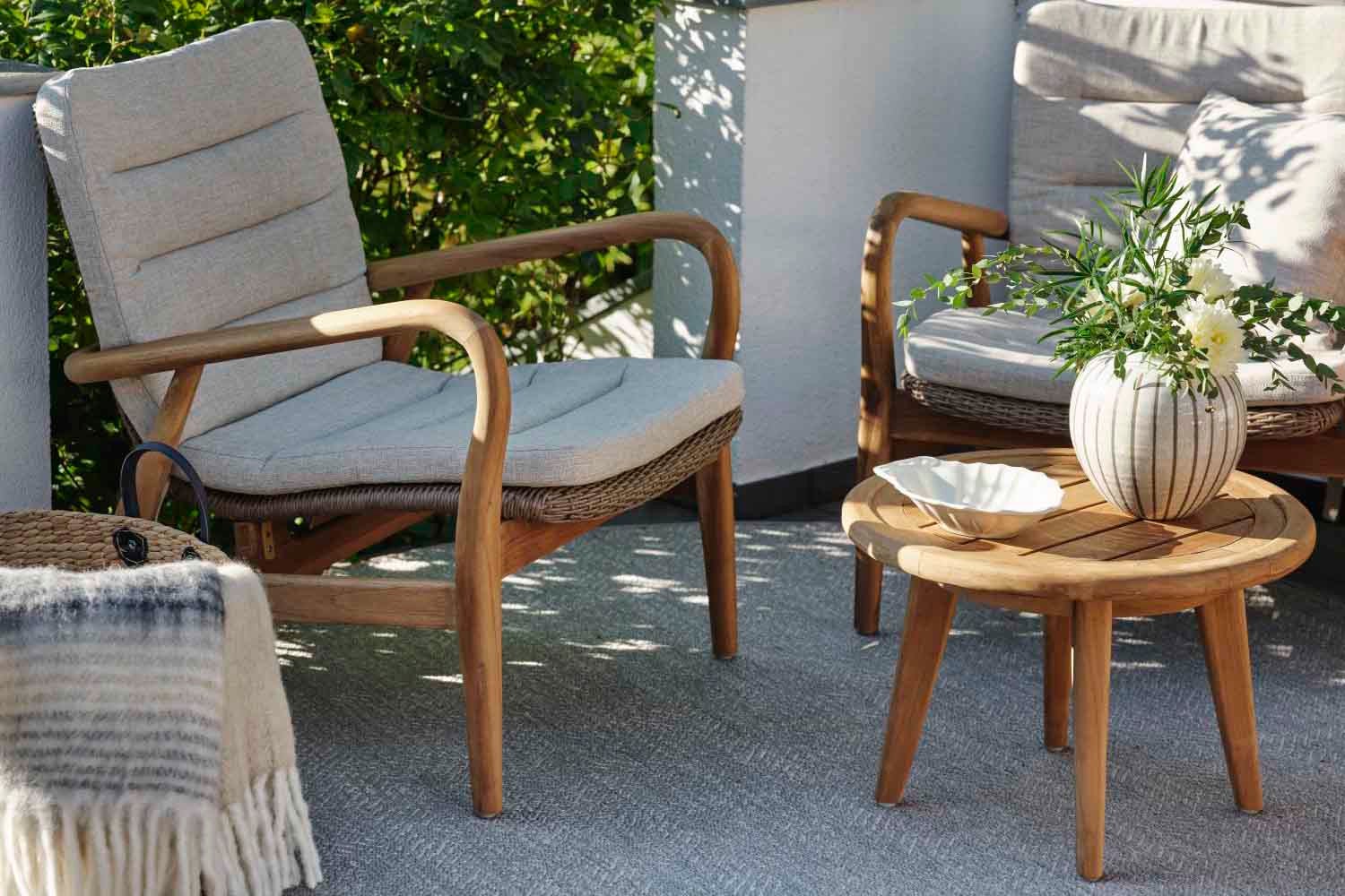 Lilja er en gruppe laget for å passe til både avslapning og måltider. Runde organiske former i teak. Solide plagg som samtidig har en eleganse i sine avrundede detaljer.