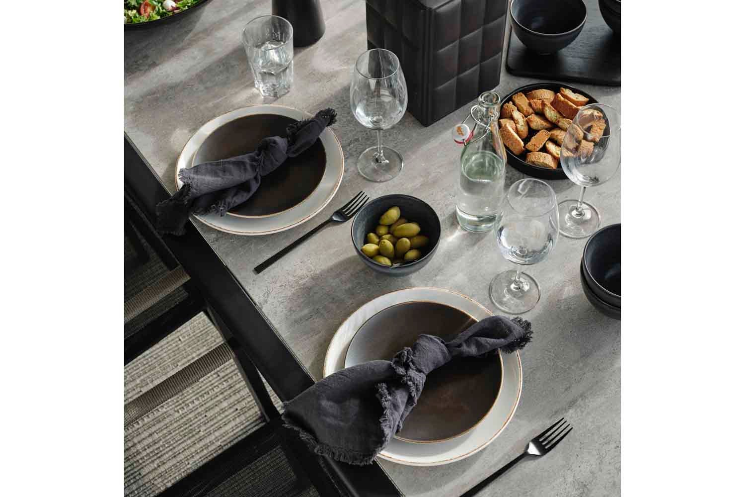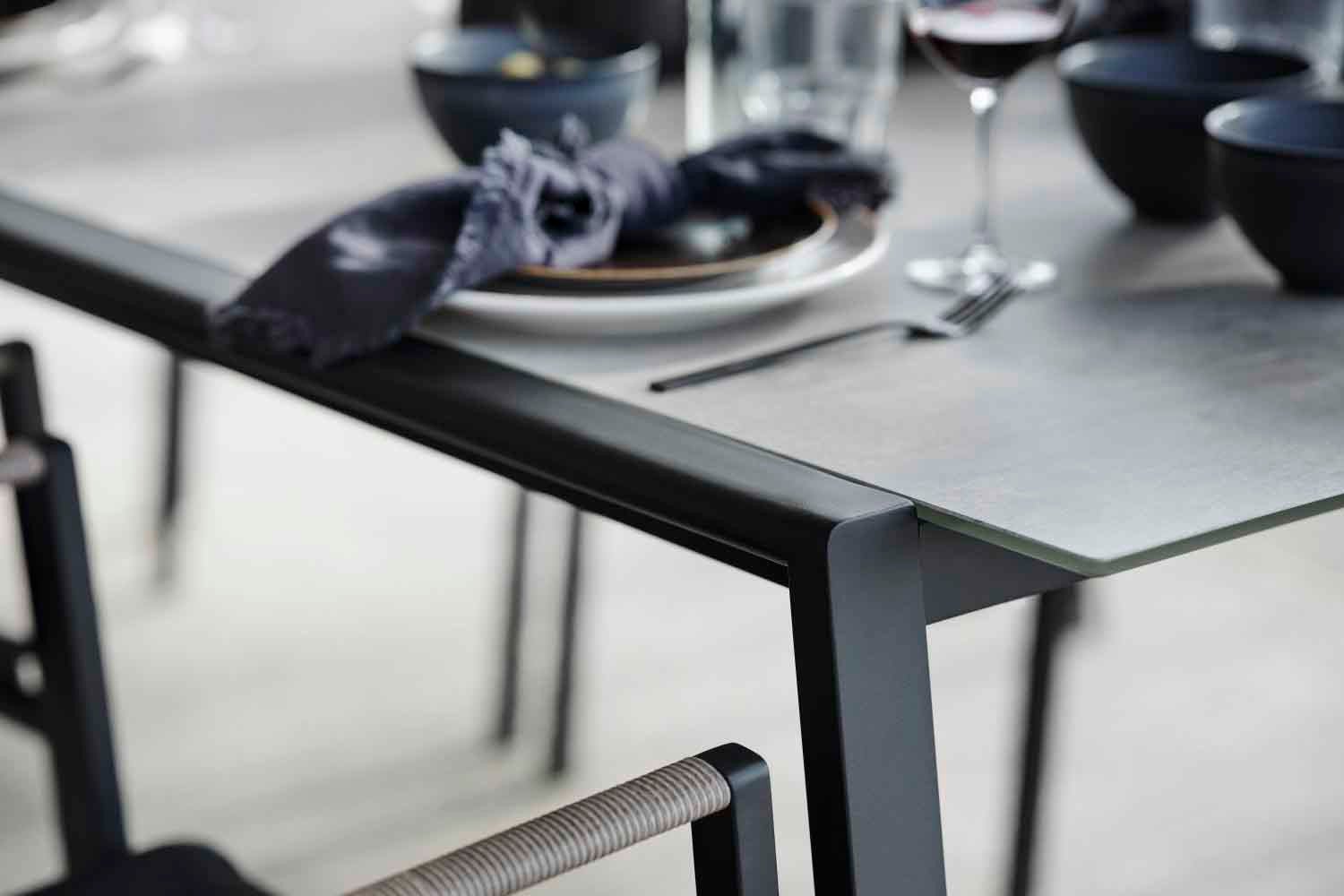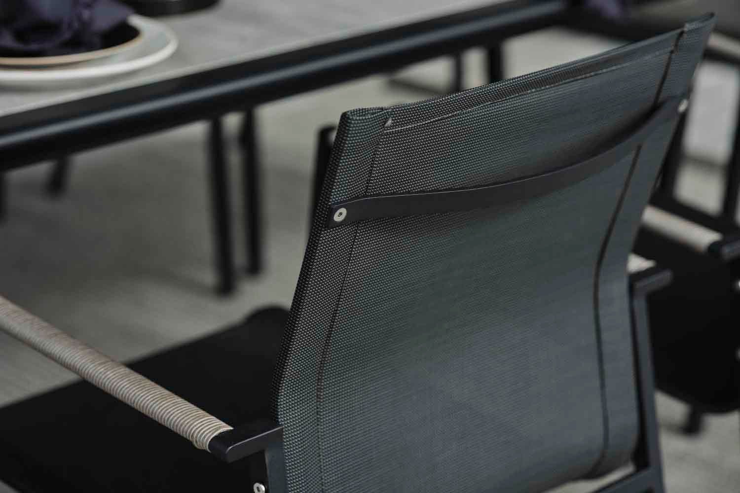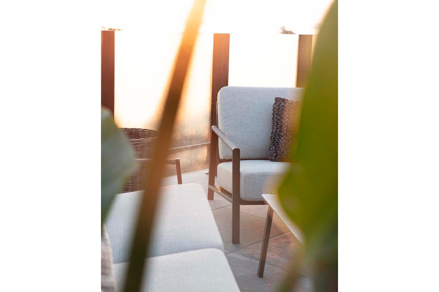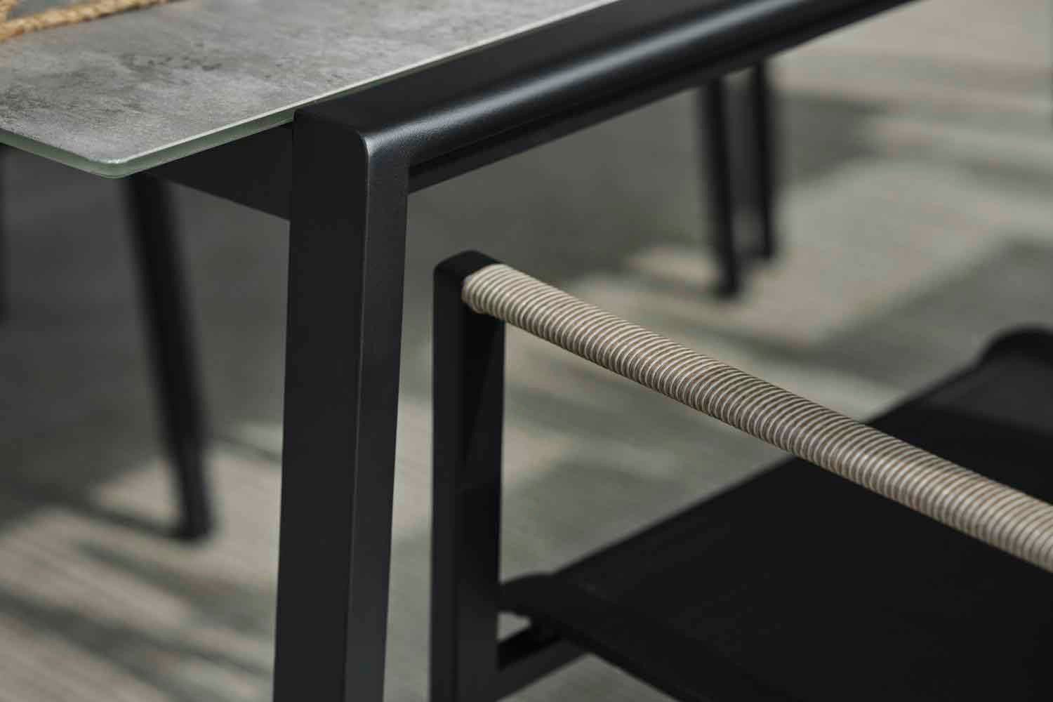 Lyra er en moderne og veldig nøktern serie i en nydelig blanding av materialer. Svart pulverlakkert ramme i rustfritt stål (304) perfekt for å takle forskjellige værforhold. Vakre detaljer av kunstig rotting på armlenene.