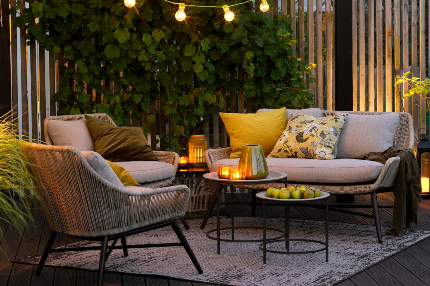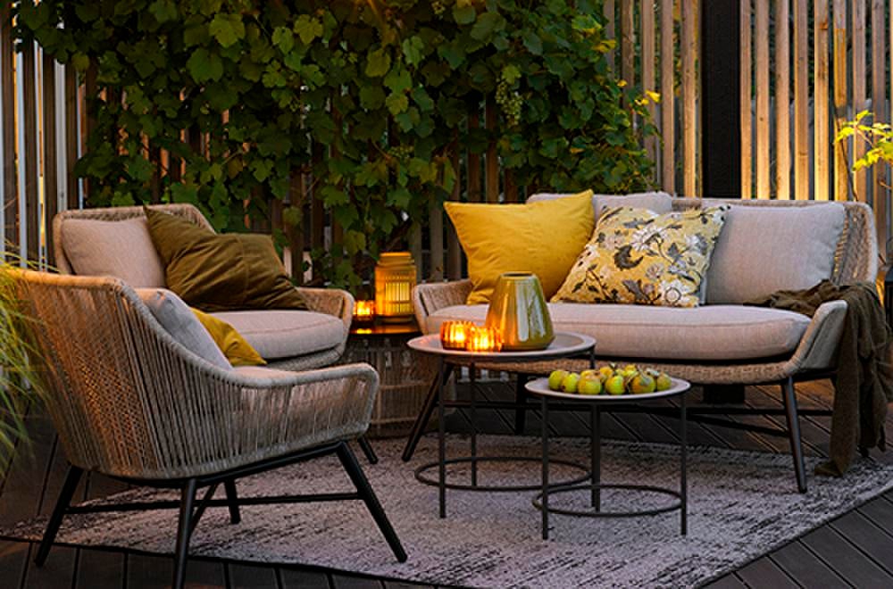 Sofagruppe med moderne, runde former i vridd rotting. Kan kombineres med bord fra vår Pamir-serie.