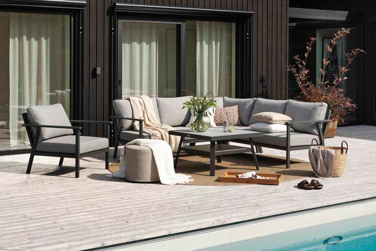 En moderne og samtidig klassisk serie i aluminium som byr på en rekke kombinasjonsmuligheter. De runde og myke formene skaper en behagelig og innbydende følelse i denne nye serien, hvor detaljene er i fokus. Tilgjengelig med ramme i hvit, grå eller khaki aluminium.