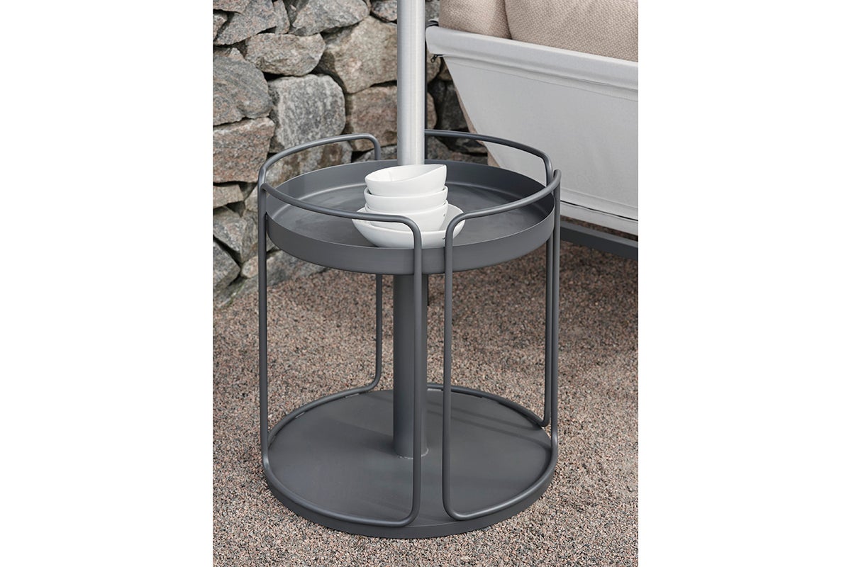 Shady sidebord er ikke et vanlig sidebord. I tillegg til å være tung og solid med to nivåer av bordplater, fungerer den også som parasollfot når det trengs. Den gjennomtenkte designen tar hensyn til at vi alltid har ting å legge bort når vi er utendørs – ting som ofte har godt av å være i skyggen. Så plasser Shady ved siden av lenestolen eller sofaen og dra nytte av det. Laget av stål.