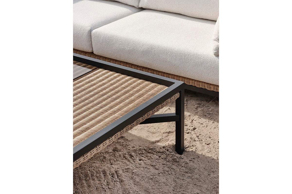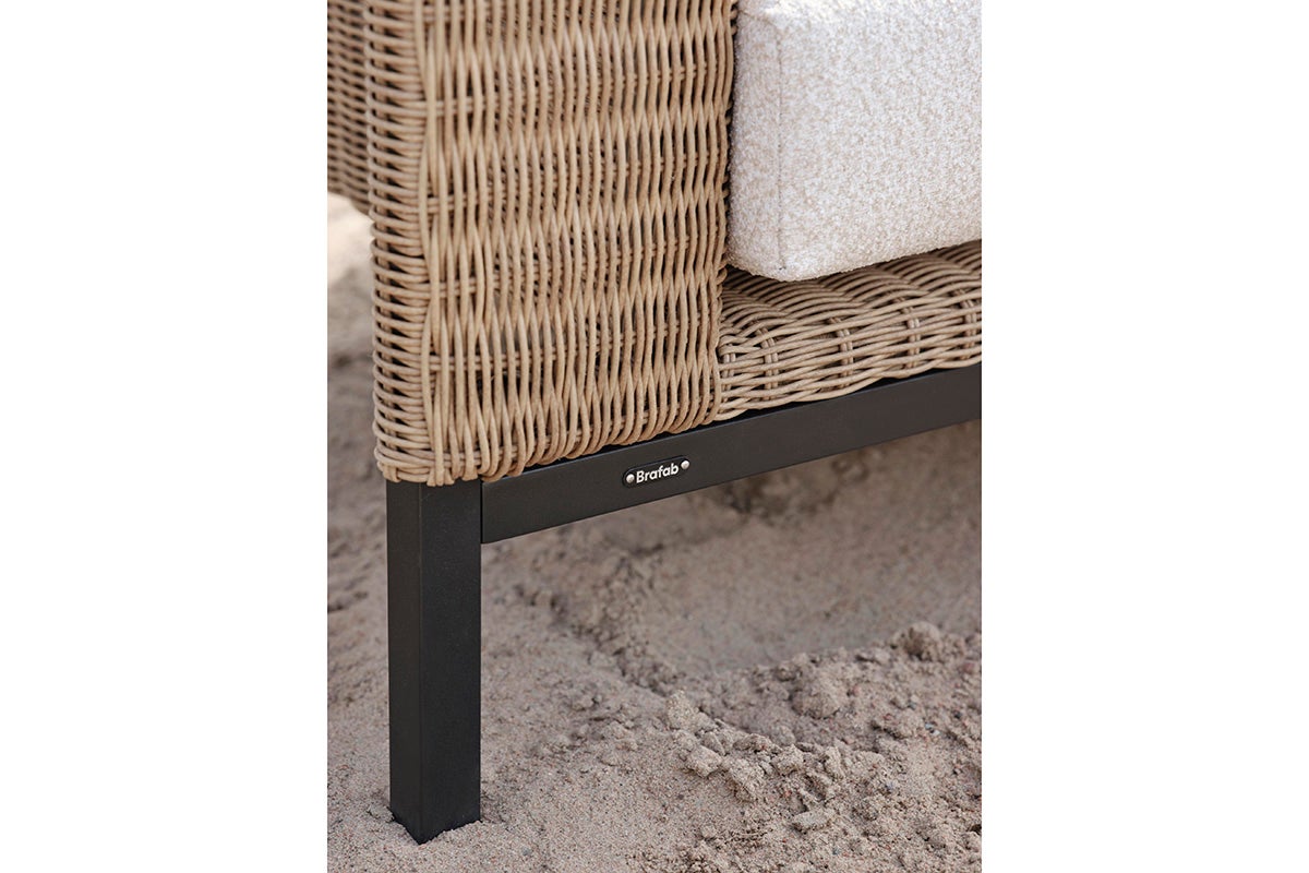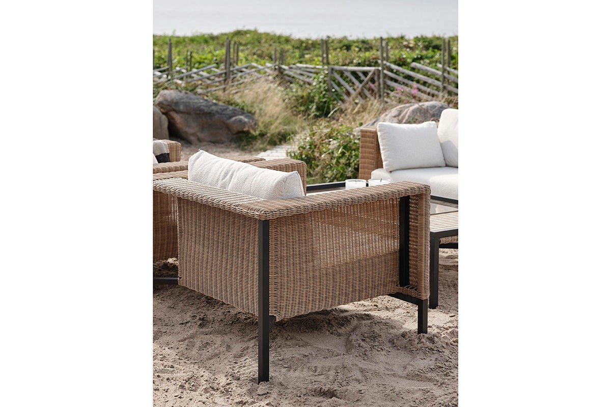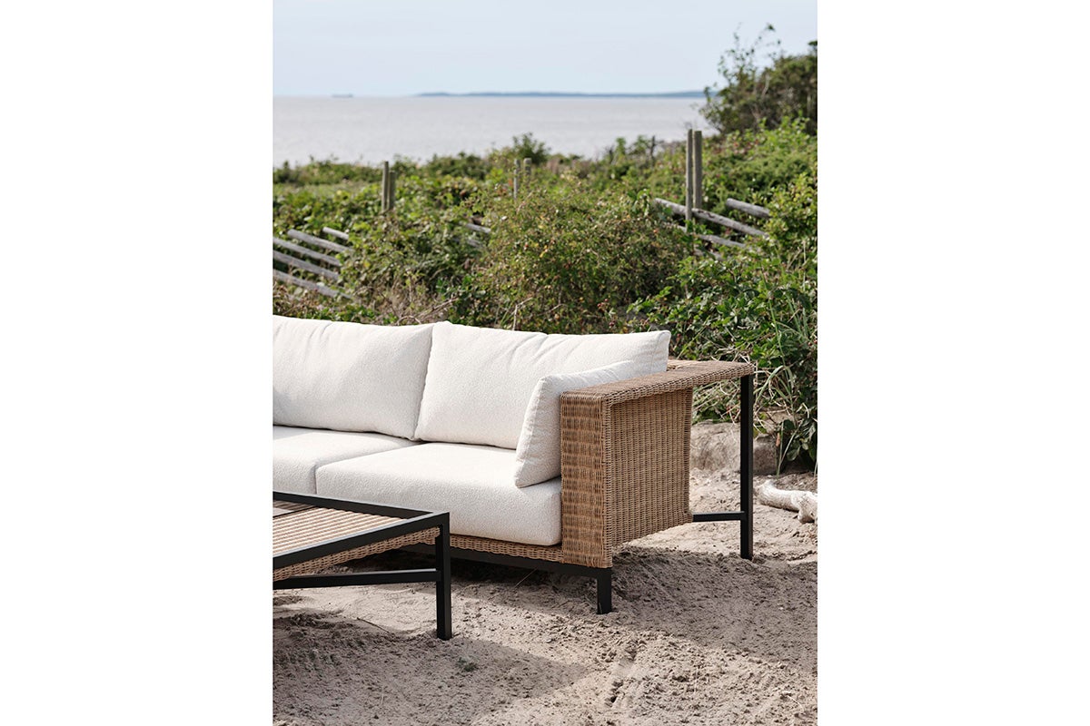 Det som skiller Shell er dens unike blanding av designpåvirkninger. De rene linjene og nøytrale fargene gir den rolige enkelheten til skandinavisk design, mens varmen og følelsen av syntetisk rotting fanger den avslappede, solfylte følelsen av Middelhavet. Denne blandingen gjør Shell til det perfekte valget for en utendørs oase som er både trendy og tidløs. Den åpne baksiden viser rammen, en annen designdetalj. Ramme i svart aluminium og puter i hvit olefinkvalitet.