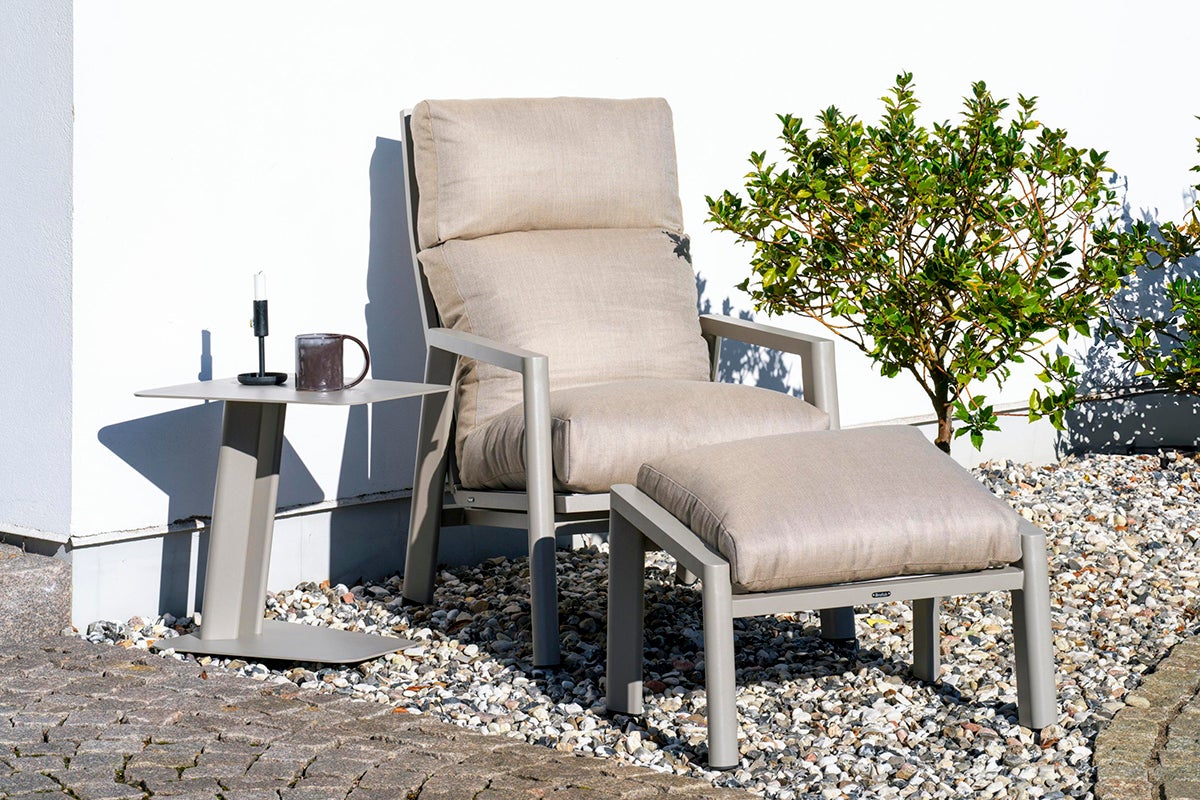 Slide kombinerer stilig design med total avslapning. Her er formen maksimert for en komfort utenom det vanlige. En sammenleggbar lenestol av høyeste kvalitet. Velkommen til å sette deg ned!