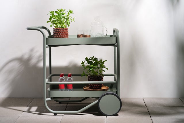 Mer enn et serveringsbord – Trolly er et multifunksjonelt statement-møbel for moderne uteliv. Inspirert av skandinavisk design, kombinerer den myke linjer med smart funksjon. Bruk den som serveringsvogn, sidebord eller løft av brettene for å servere umiddelbart. Harmoniske overganger mellom karosseri, skiver og hjul hever det allsidige designet. Design: Johan Skoog.