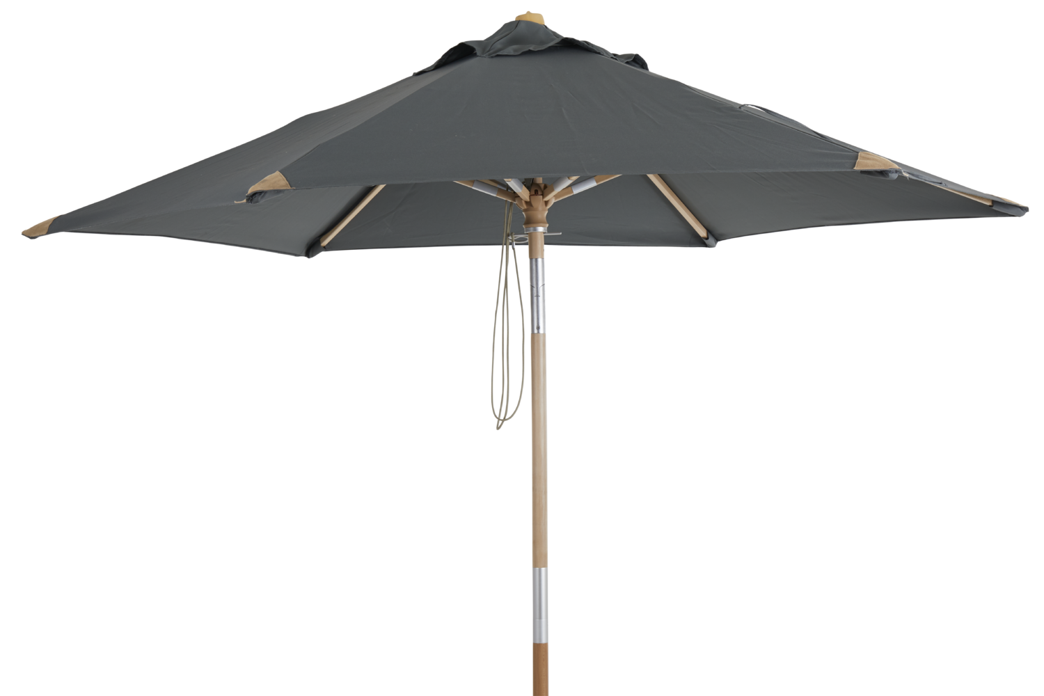 2,5 m treparasoll (bøk) med mattlakkert overflate. 2-delt stang med push-tilt. Vakre skinnmaljer og stoff laget av 250 g polyester.